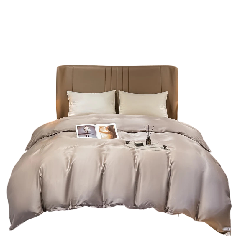Överdraget i naturligt morus-siden är en elegant detalj i sängkläder. Sidenmaterialet är känt för sin mjukhet, släta yta och naturliga andningsförmåga. Tack vare sin naturliga glans ger tyget ett mycket estetiskt intryck och ger sovrummet ett rent och modernt utseende.