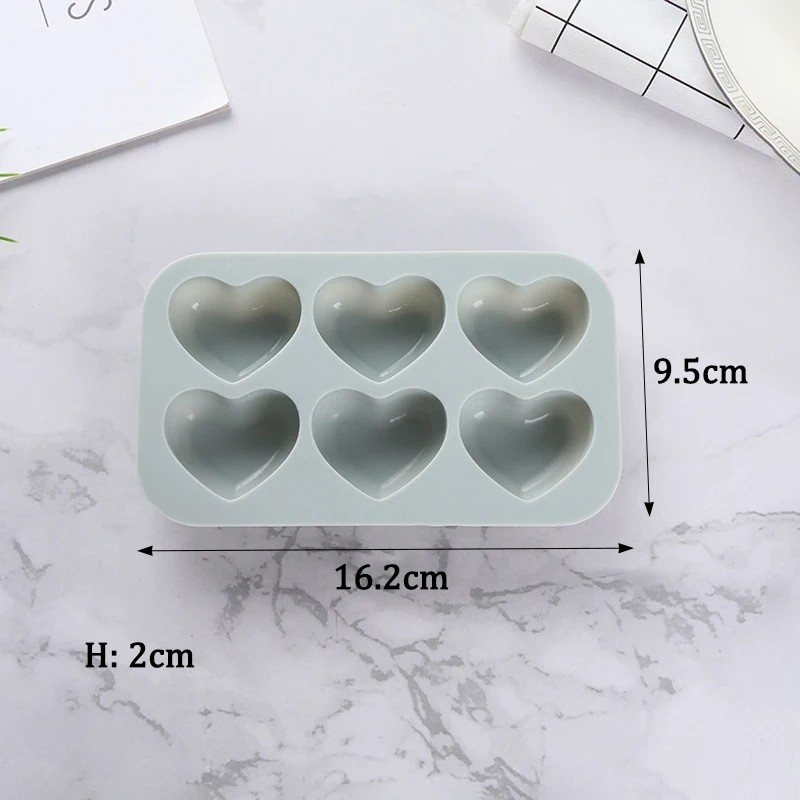 Startsida Startsida Hus och hushållsartiklar Dekorationer och hemtillbehör Ljus Silikonform för gjutning av tvål och ljus Hjärta 6 fack 16,2 x 9,5 x 2 cm rosa eller grön
