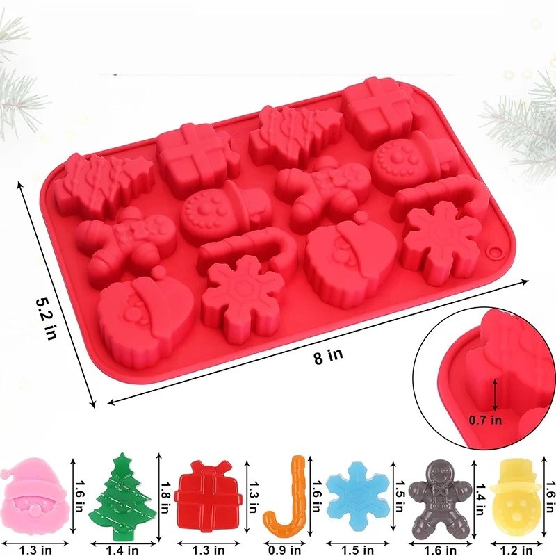 Denna jul silikonform med måtten 20,3 × 13 cm erbjuder 7 söta former – snögubbe, jultomte, gran, present, pepparkaksgubbe, käpp och snöflinga. Den är idealisk för att göra hemgjord choklad, praliner, iskuber, gelé, tvål eller mini-desserter. Tillverkad av eco-silikon som är livsmedelssäkert, utan BPA och lukt. Tål temperaturer från -40 °C till +230 °C.