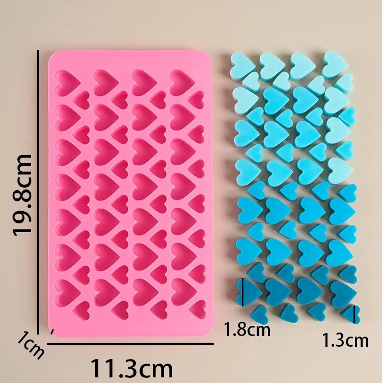 Praktisk silikonform med motiv av små hjärtan är idealisk för tillverkning av choklad, godis, gelé, is, tvål eller ljus. Den flexibla och hållbara silikonen möjliggör enkel avlägsnande av färdiga produkter och enkel rengöring. Tack vare sin mångsidiga användning är den lämplig både för bakning och för frysning.