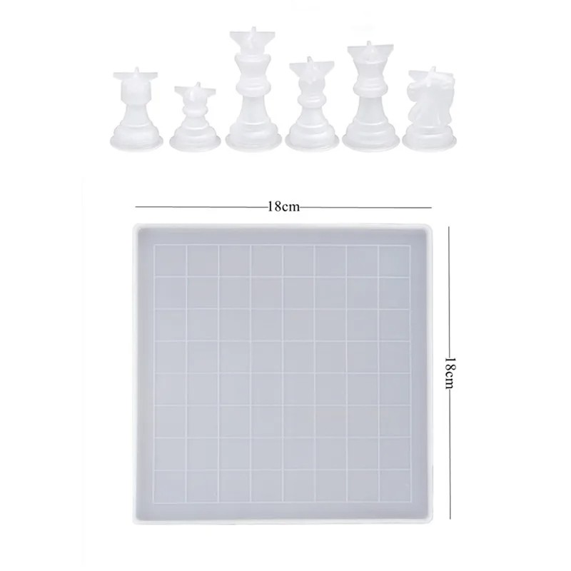 Silikonformar för harts schackpjäser och spelbräde 18 x 18 cm komplett set för tillverkning av schackspel