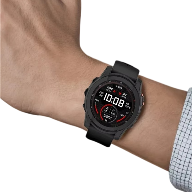 Fodralet är tillverkat av mjukt silikonmaterial som anpassar sig efter klockans form och samtidigt känns behagligt vid beröring. Tack vare den flexibla konstruktionen kan fodralet enkelt sättas på och tas av utan verktyg. Mjukt silikonmaterial hjälper också till att dämpa mindre stötar vid oavsiktliga fall.