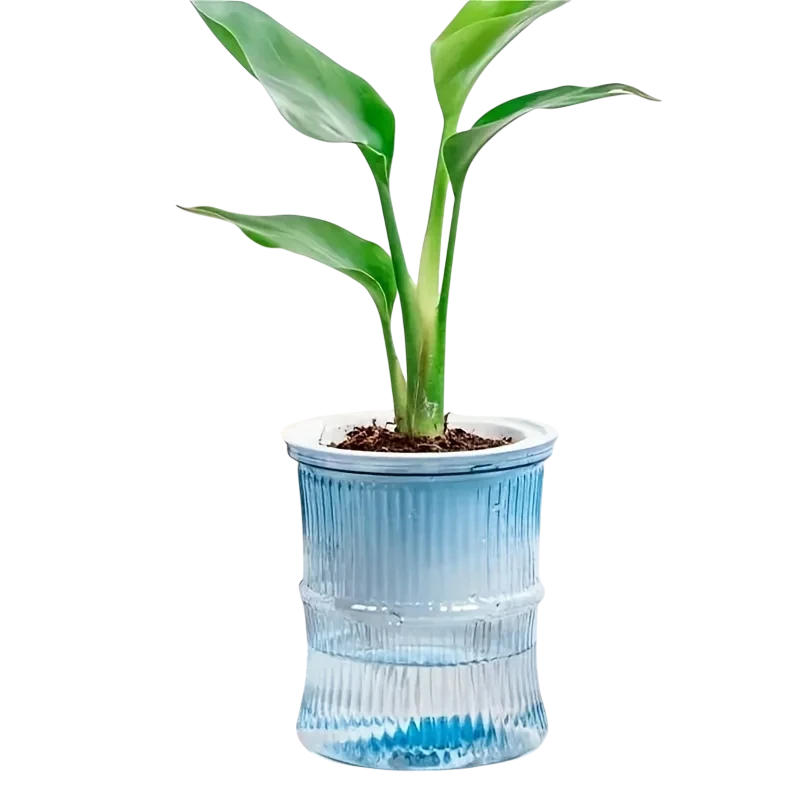 Modern blomkruka erbjuder ett effektivt sätt att odla inomhusväxter med minimal underhåll. Konstruktionen är uppdelad i två delar, där den nedre vattentanken används för att lagra vatten och den övre delen innehåller klassisk jord för naturlig växttillväxt. Tack vare det genomtänkta självbevattningssystemet tar växten emot vatten successivt efter behov. Det halvgenomskinliga materialet möjliggör enkel kontroll av vattennivån och stödjer en hälsosam utveckling av rotsystemet. Den eleganta designen är idealisk för kontor, hem och moderna interiörer.