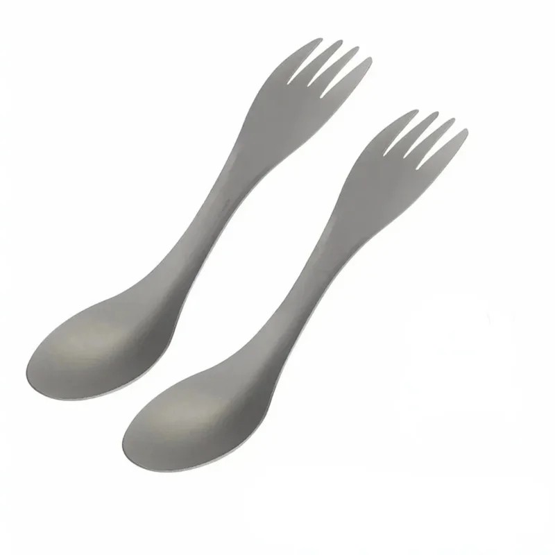 Kombinerad sked och gaffel kan vara ett praktiskt tillbehör vid måltider utanför hemmet. Genom att förena två funktioner i ett verktyg kan besticket användas för olika typer av rätter. Kompakta dimensioner och låg vikt underlättar bärandet under resor eller utflykter. Setet innehåller två stycken bestick som kan användas till exempel vid camping eller picknick. Denna typ av bestick kan vara en del av utrustningen för utomhusaktiviteter.