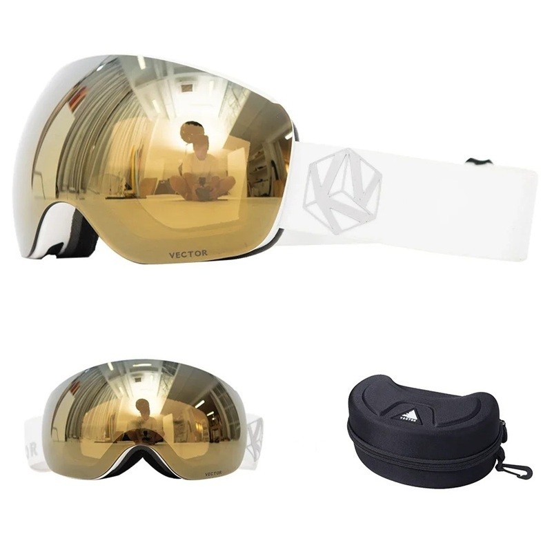Skidglasögon 19 x 10,5 cm Unisex UV400 Polykarbonat Antimoln med Hårt Fodral Vita med Vector Mönster Utomhus Sport Stiliga Dessa