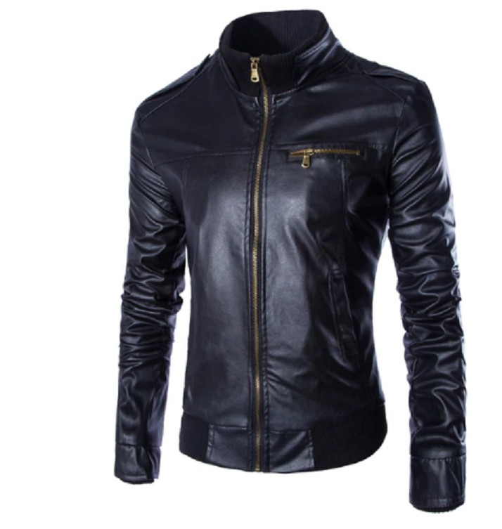 Klä upp dig i denna snygga skinnjacka med krage.
