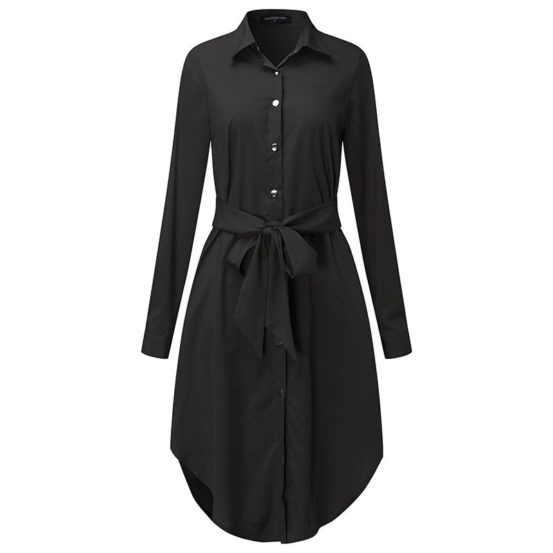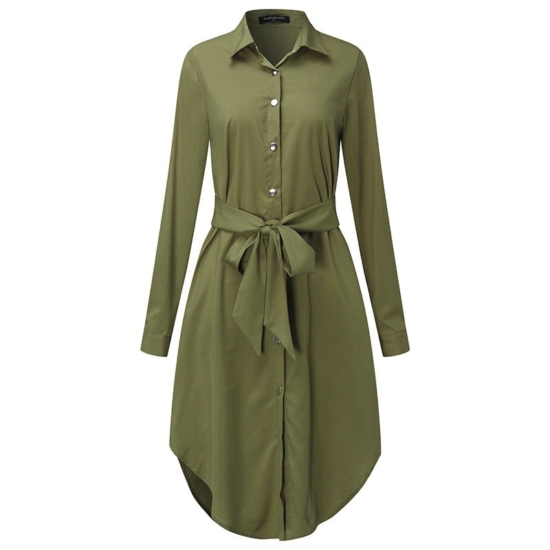 Långärmad skjortklänning för kvinnor.