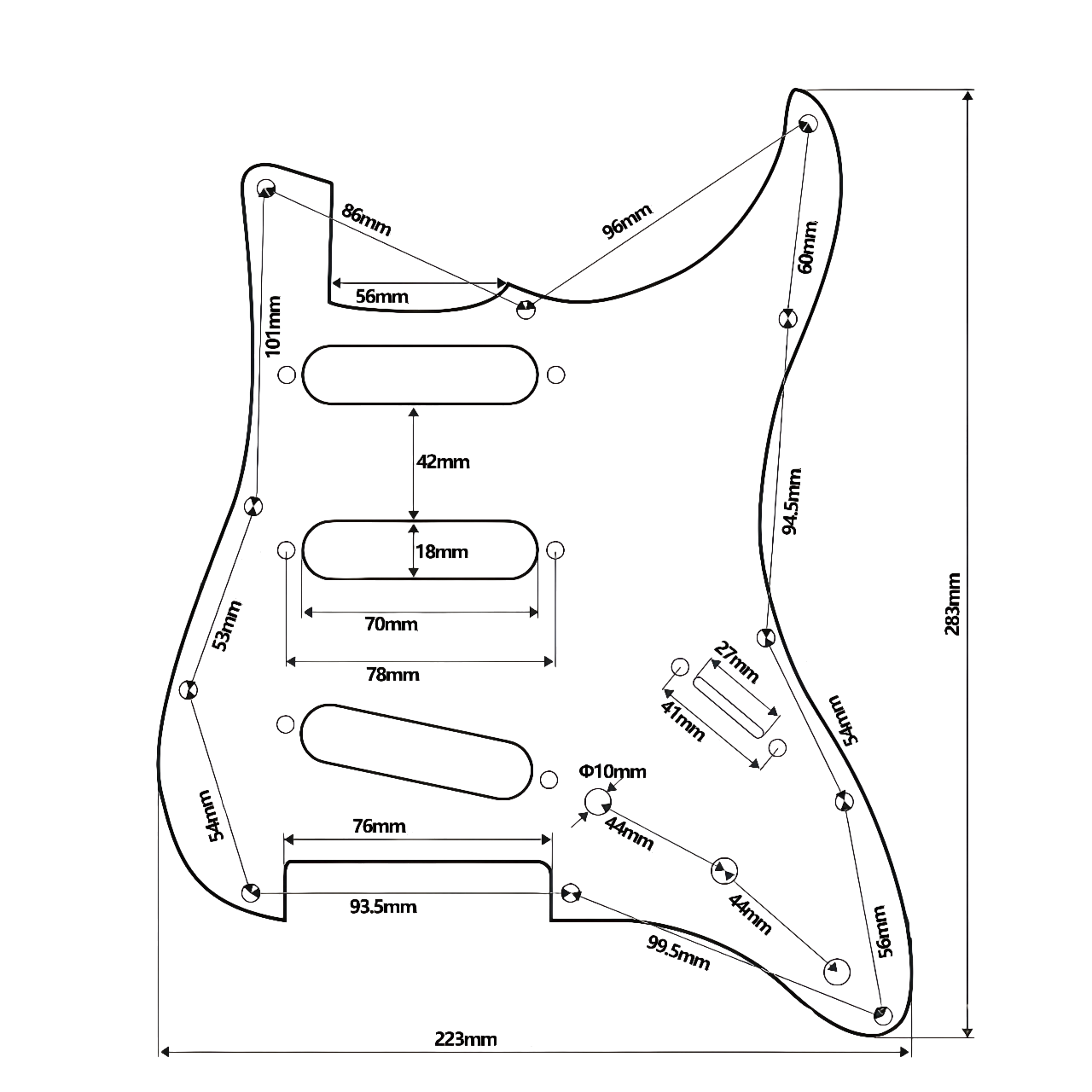 Kåpan hjälper till att skydda instrumentets kropp mot repor, damm och skador vid byte eller justering av pickups. Aluminiumlagret fungerar samtidigt som ett effektivt skydd mot elektromagnetiska störningar, vilket förbättrar signalens renhet och den övergripande ljudkvaliteten. Montering är enkel och kräver inga speciella verktyg – det räcker att fästa det med hjälp av befintliga skruvar på gitarrens kropp.