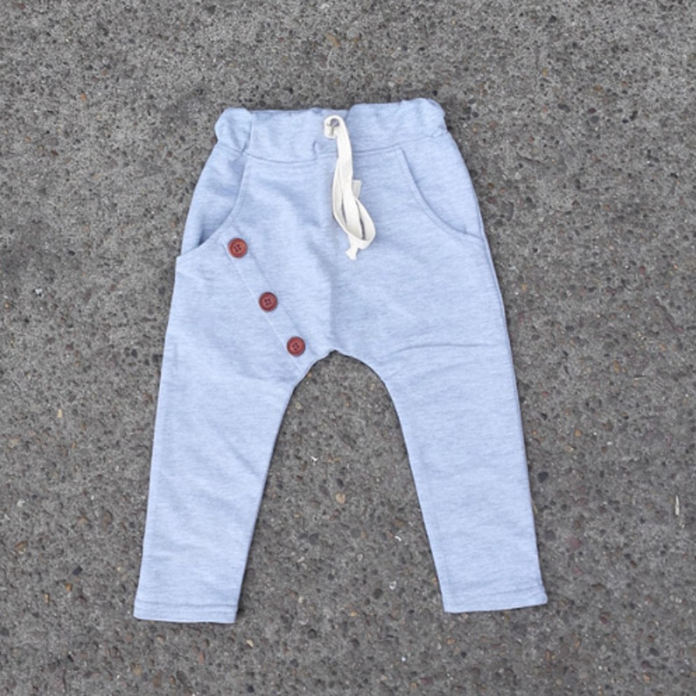 Vackra träningsbyxor för pojkar med 2 fickor och knappar på höger ficka.
