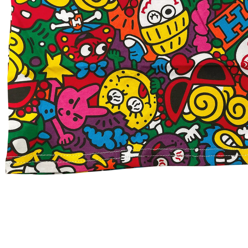 Denne barn sommar t-shirt Hysteric Mini representerar den perfekta kombinationen av stil, kvalitet och komfort. Tillverkad av ren 100% bomull, erbjuder den exceptionell mjukhet, andningsförmåga och komfort vid användning även under de varmaste dagarna. Anime-design med färgglada tecknade mönster ger t-shirten ett unikt utseende som både pojkar och flickor kommer att älska. T-shirten har O-hals och är designad för en lös, bekväm passform som inte begränsar rörelse. Tack vare kvalitetsmaterialet och den originella tryckningen är den idealisk för vardagsbruk, semester, lekplats och fritid.