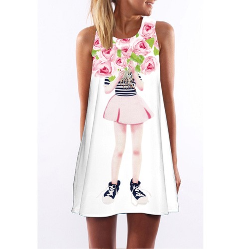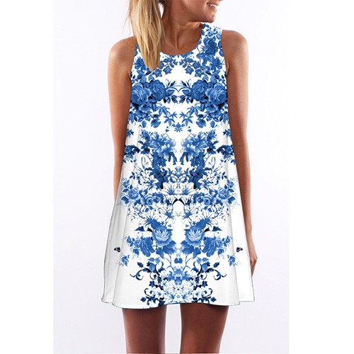 Sommarklänning med tryck för kvinnor A740
