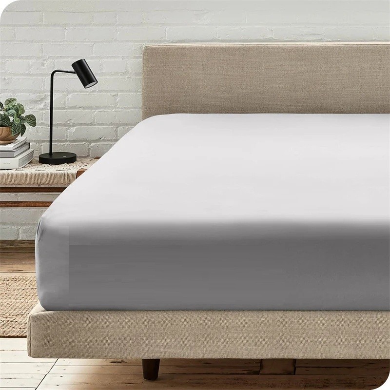 Enfärgat spännbart lakan med gummiband runt om är avsett för vanlig daglig användning i hemmet. Den enkla designen ger ett rent intryck och är lätt att kombinera med olika typer av sängkläder.