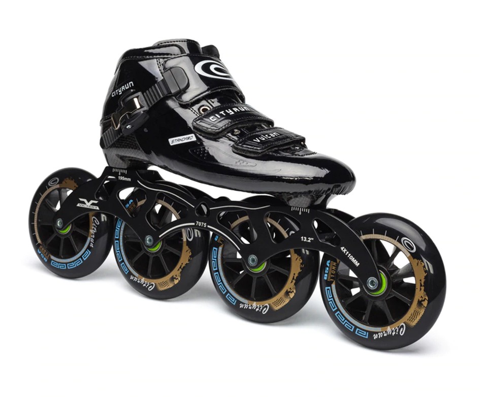 Dessa snabbskridskor med stora hjul är designade för snabbåkning.