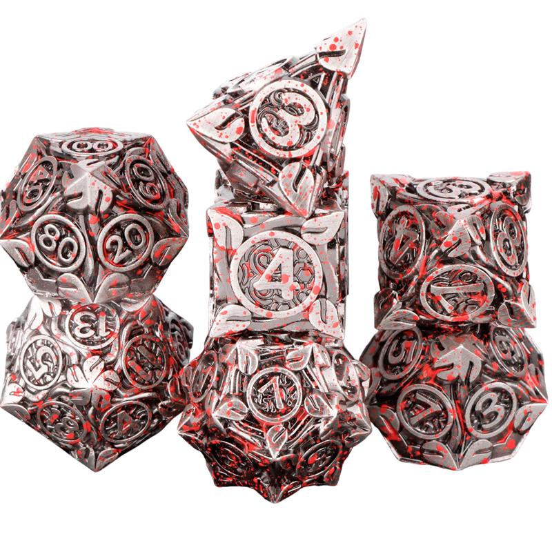 Denna sats med spel tärningar är designad för bräd- och rollspel med fokus på en naturlig fantasyatmosfär. Den innehåller 7 st spel tärningar, som utgör en standardkombination som används i RPG-system och spel av typen Drakbon. Motivet av löv inspirerat av naturen ger tärningarna en harmonisk look och passar naturligt in i fantasyvärldar.