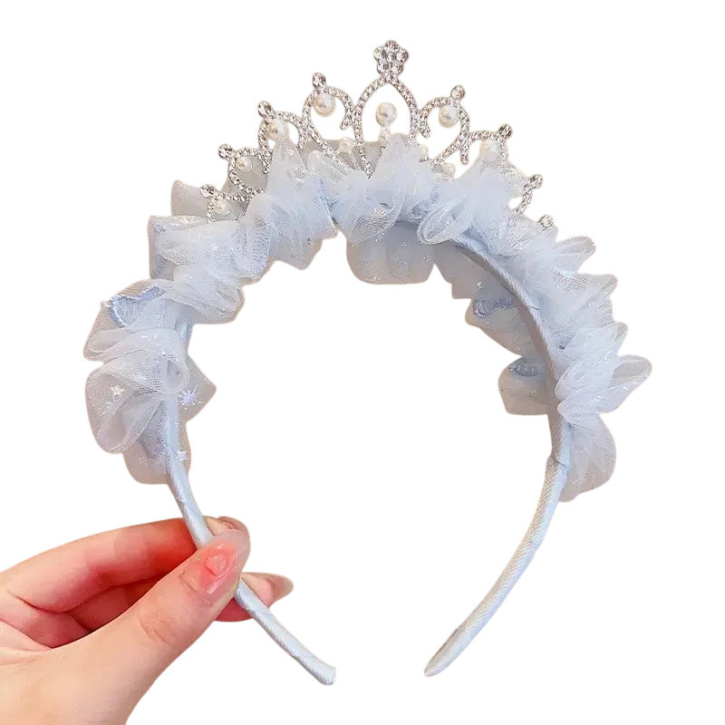 Elegantiskt håraccessoar med spets, tiara och pärlor som framhäver festlig frisyr. Perfekt för bröllop, baler, fotografering och speciella tillfällen. Fullständig beskrivning