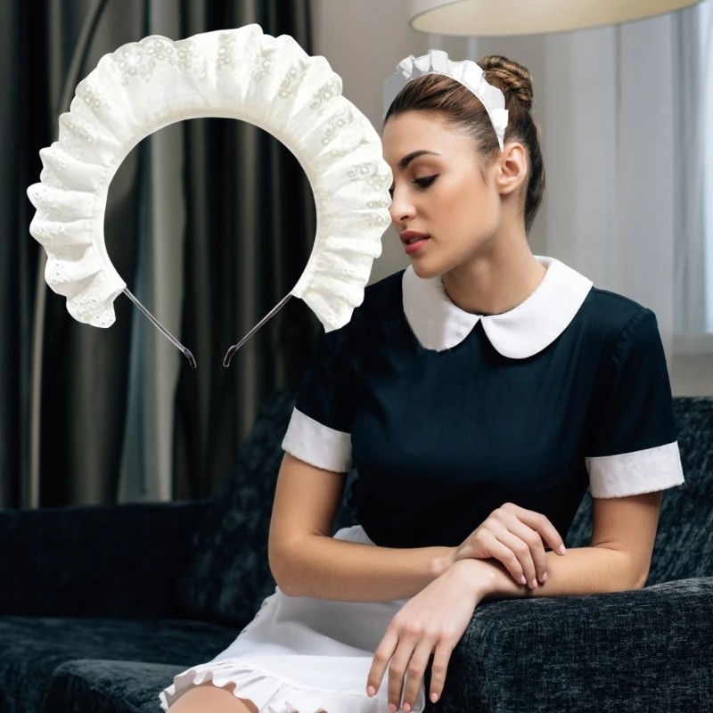 Spetsdiadem för tjänarinnor är ett iögonfallande tillbehör inspirerat av retro mode, som perfekt kompletterar temakostymer och stiliga outfits. Den fina spetsdesignen ger en elegant och lekfull känsla, vilket gör den lämplig för temafester, fotografering eller teateruppträdanden. Accessoaren ger frisyren en karaktäristisk look och hjälper till att skapa en autentisk stil på bara några sekunder. Tack vare det lätta materialet är diademet bekvämt även vid långvarig användning. Det är lätt att kombinera med klänningar och kostymer i olika stilar.