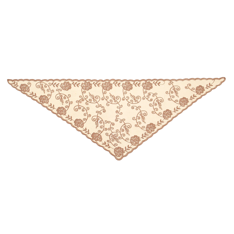 Elegant spetsig triangulär scarf är en stilfull accessoar för kvinnor som vill ge sin outfit en mjuk och romantisk touch. Tack vare måttet 130 x 45 cm erbjuder den många bäralternativ – som scarf för huvudet, halsen, i håret eller som modehårband. Det fina blommönstret ger en elegant och tidlös känsla, vilket gör den lämplig för både vardagliga och festliga tillfällen. Den lätta konstruktionen säkerställer bekväm användning hela dagen.