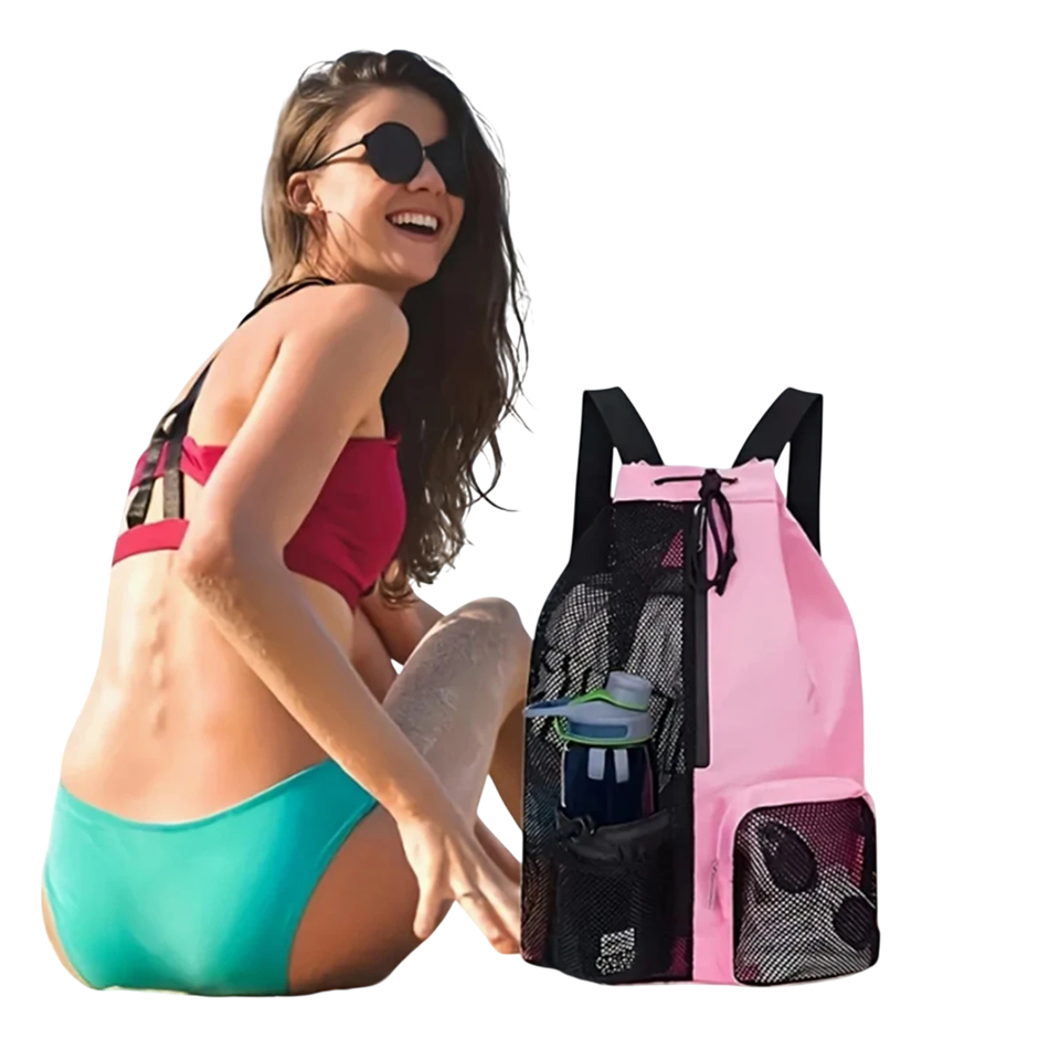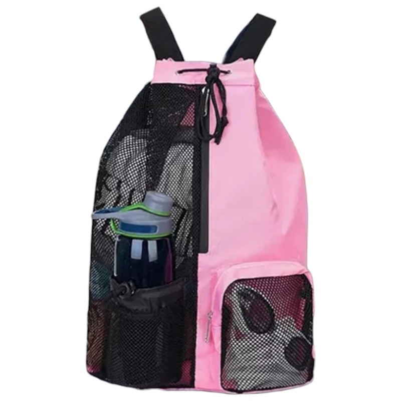 Sportväska 47 × 28 × 14 cm Perforerad ryggsäck med dragsko Nätfickor med dragkedja Lätt nylonryggsäck för sport och fritid