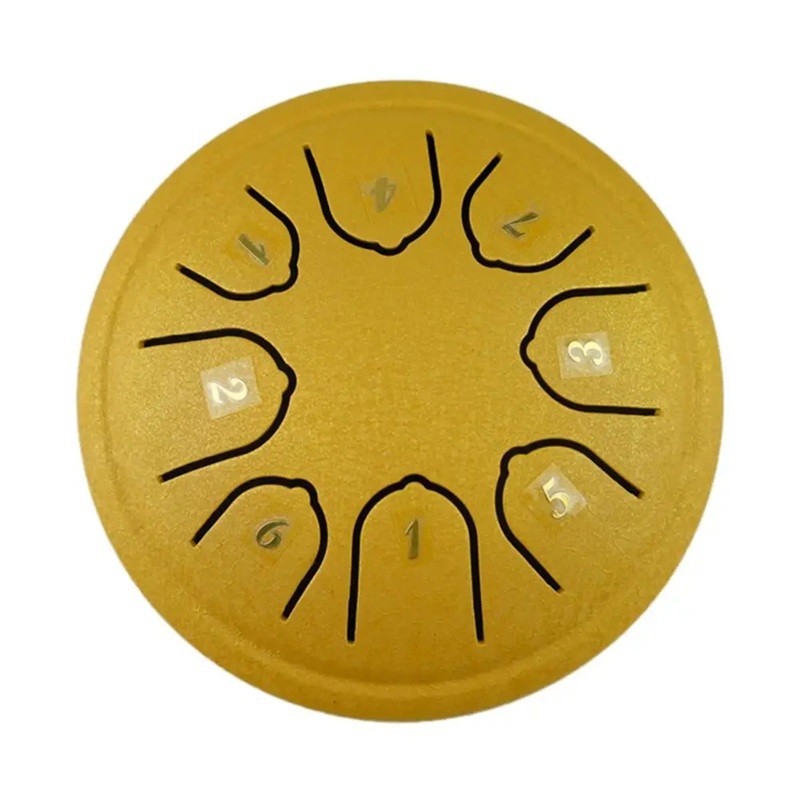 Stål tongue drum med en diameter på 11,5 cm är ett kompakt musikinstrument som kan skapa mjuka och lugnande melodier. Tack vare åtta toner är den lämplig både för fullständiga nybörjare och för mer erfarna spelare som söker ett bärbart instrument med en behaglig klang. Den är idealisk för meditation, avkoppling, musikterapi eller som ett originellt komplement till musikundervisning.