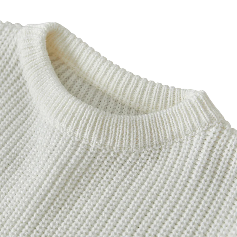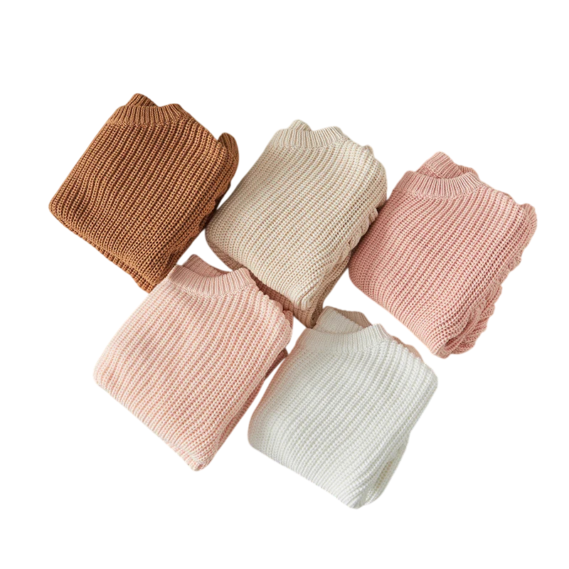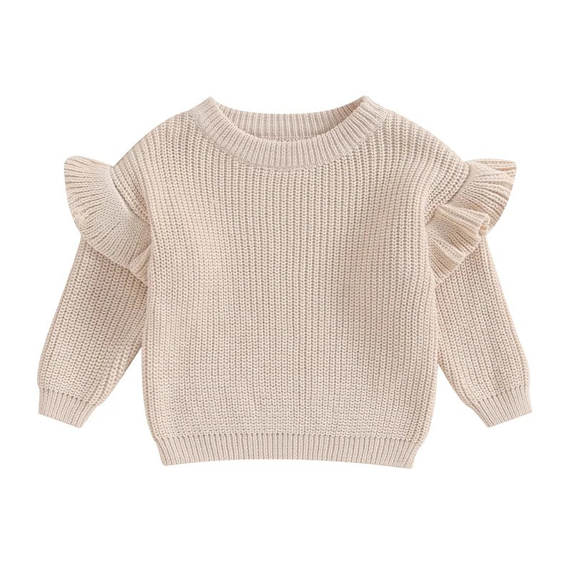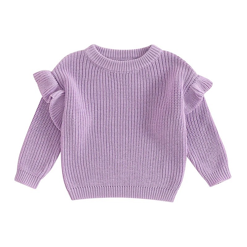 Startsida Startsida Kläder och accessoarer Barnkläder Kläder för de minsta Babykläder för flickor Babytröjor för flickor Stickad barntröja med volanger för nyfödda Bomull och akryl Lång ärm Enfärgad lös topp med rundad hals O-neck för flickor och pojkar