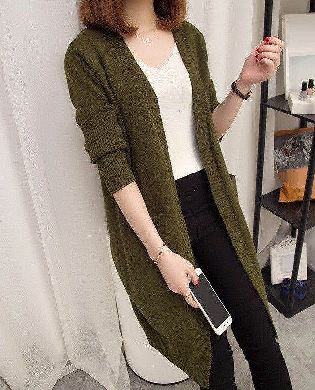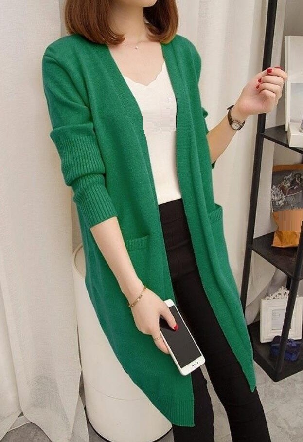 Stickad cardigan för kvinnor med fickor A2052