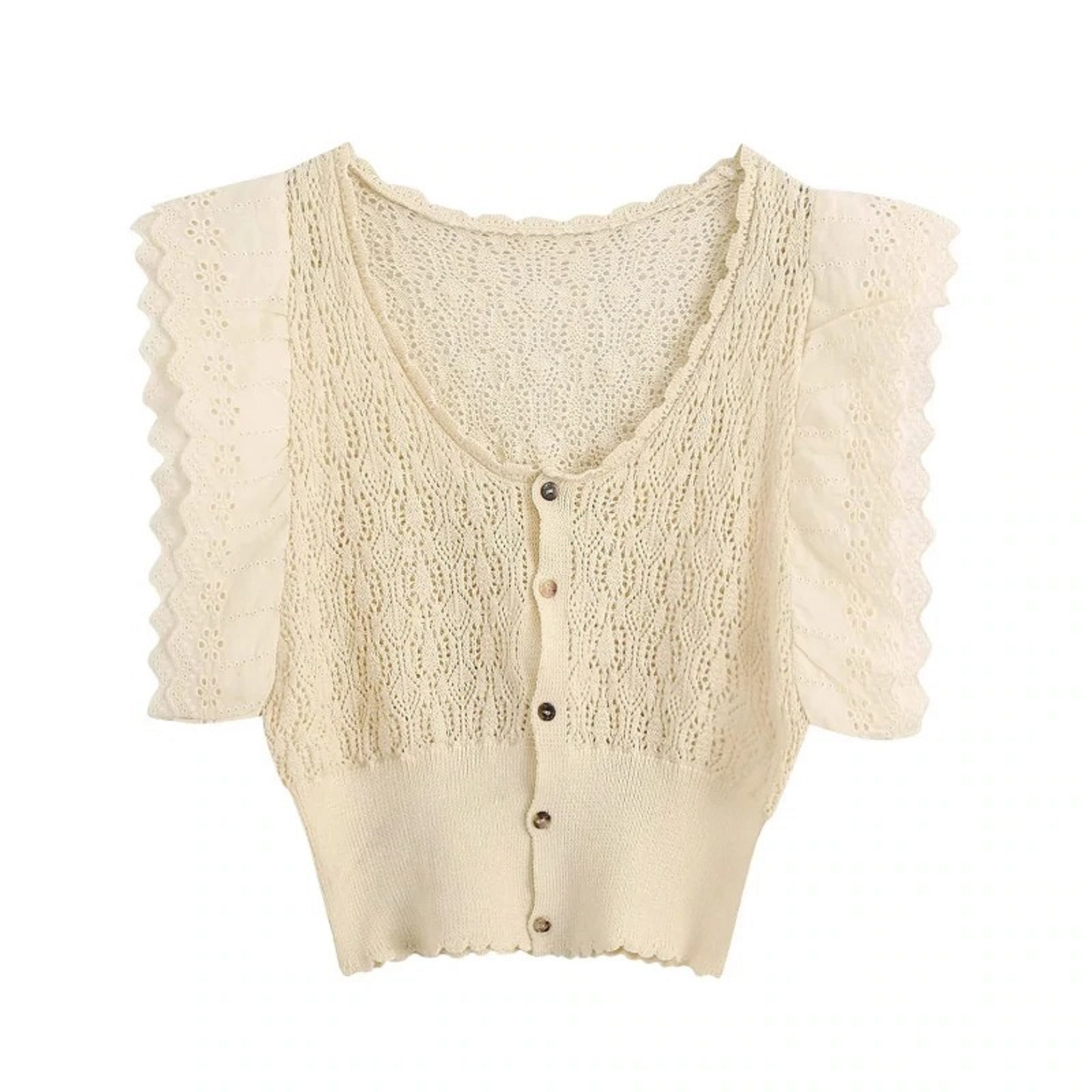 Stickad croptop för kvinnor med volanger
