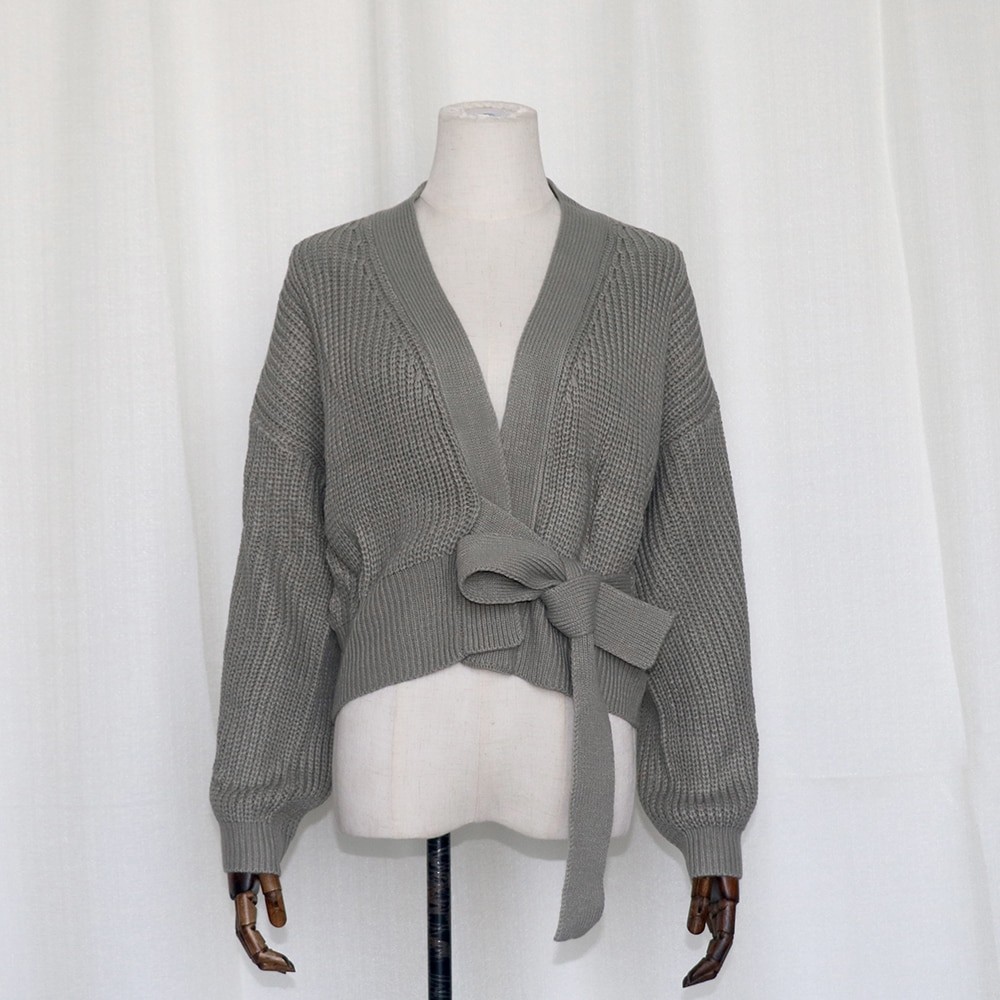 Stickad damtröja med knytband