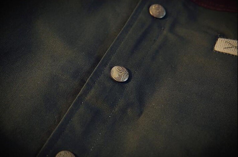 Var in med denna stiliga herrjacka med krage, som har knapplåsning.