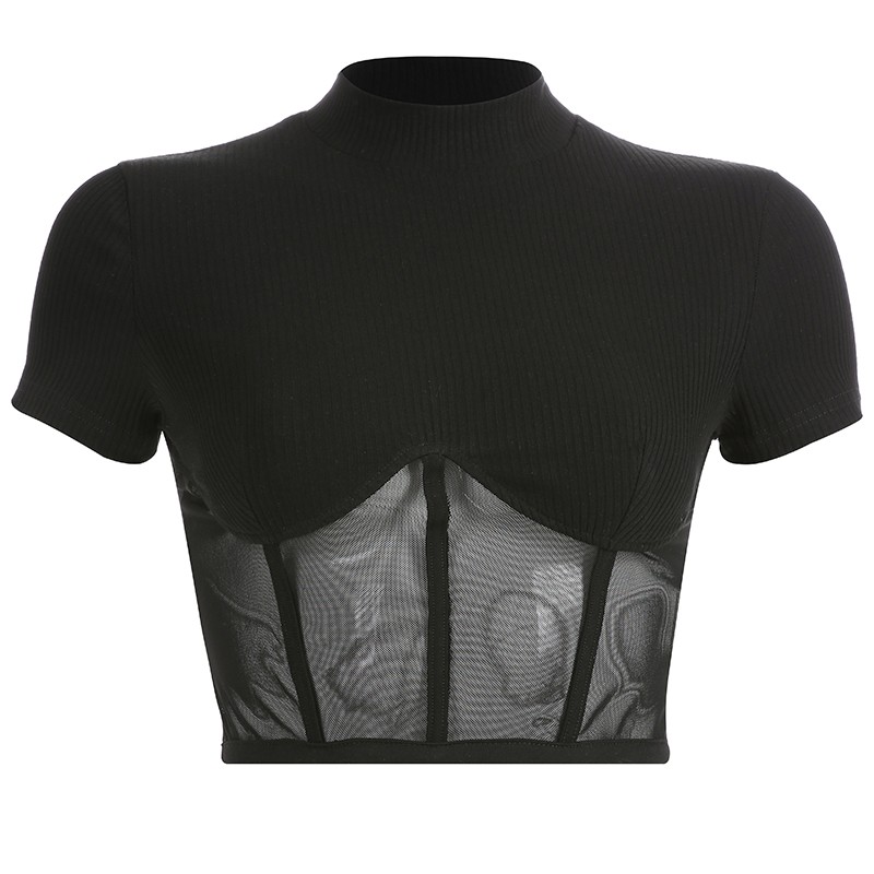 Svart crop top för kvinnor med mesh