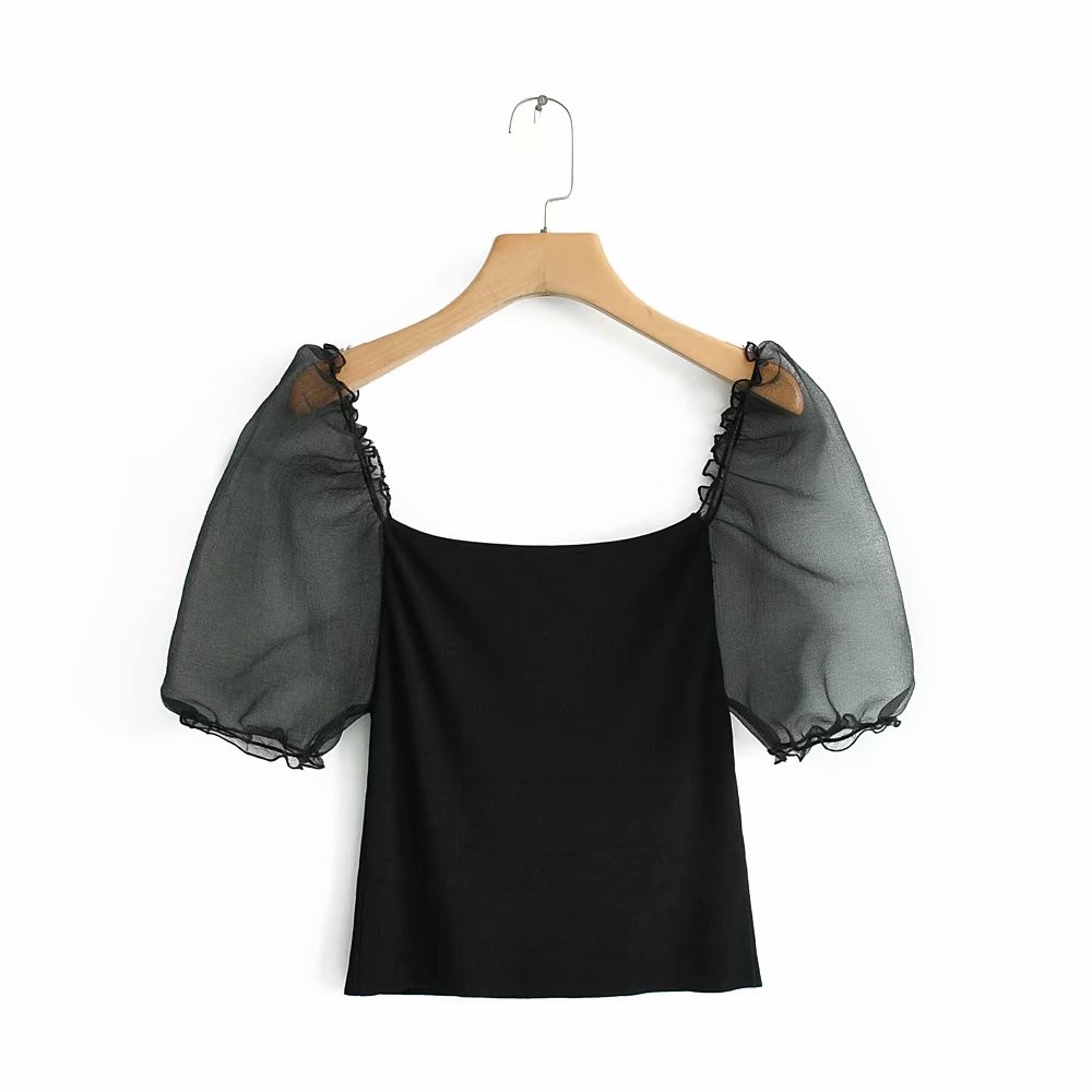 Svart damblus med skira ärmar