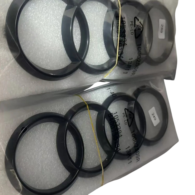 Svart glänsande framsymbol 285 mm För Audi A6 2012-2017 Q7 2009-2015 och alla Q2 Q3 Q5 Q8 Självhäftande logotyp Grillbilsaccessoarer