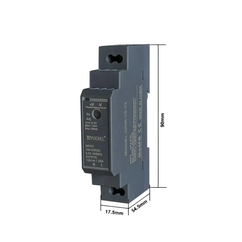 Switchad strömförsörjning för DIN-skena AC 100–240V DC 12V 15W Kompakt strömadapter Industriell strömförsörjning 1,8x9x5,5 cm