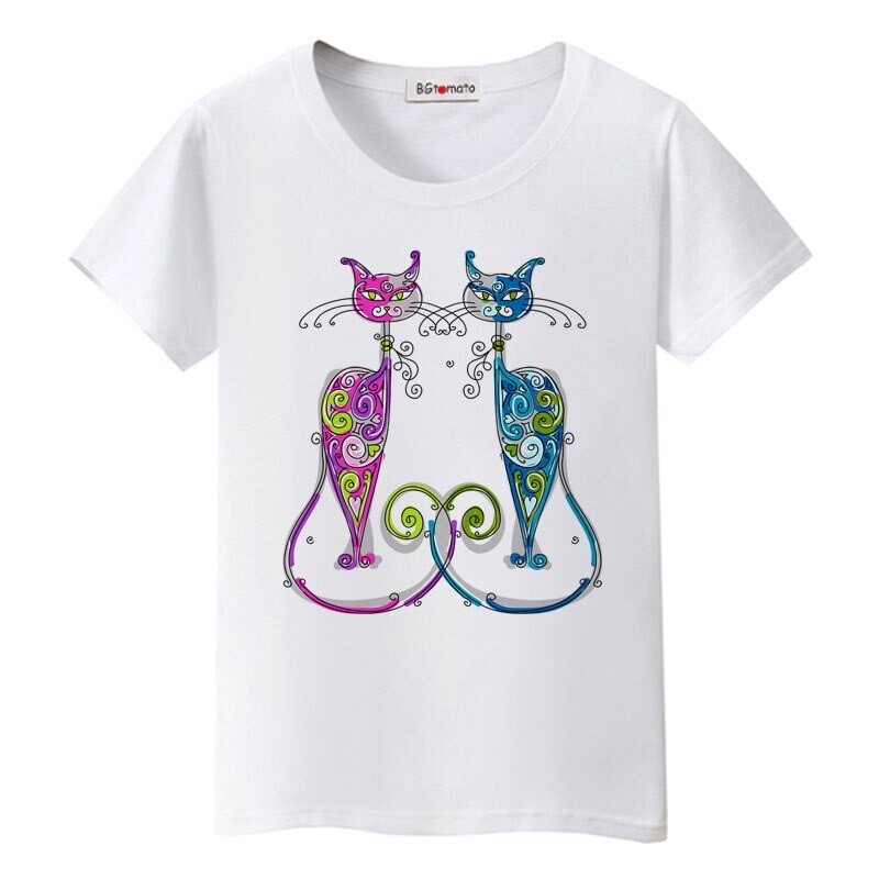 T-shirt dam med katttryck B385