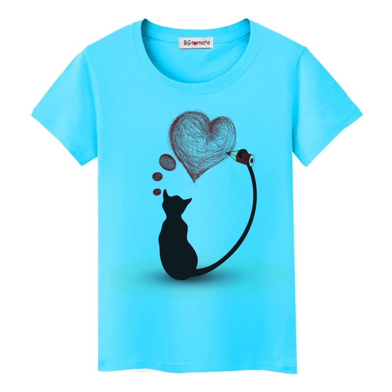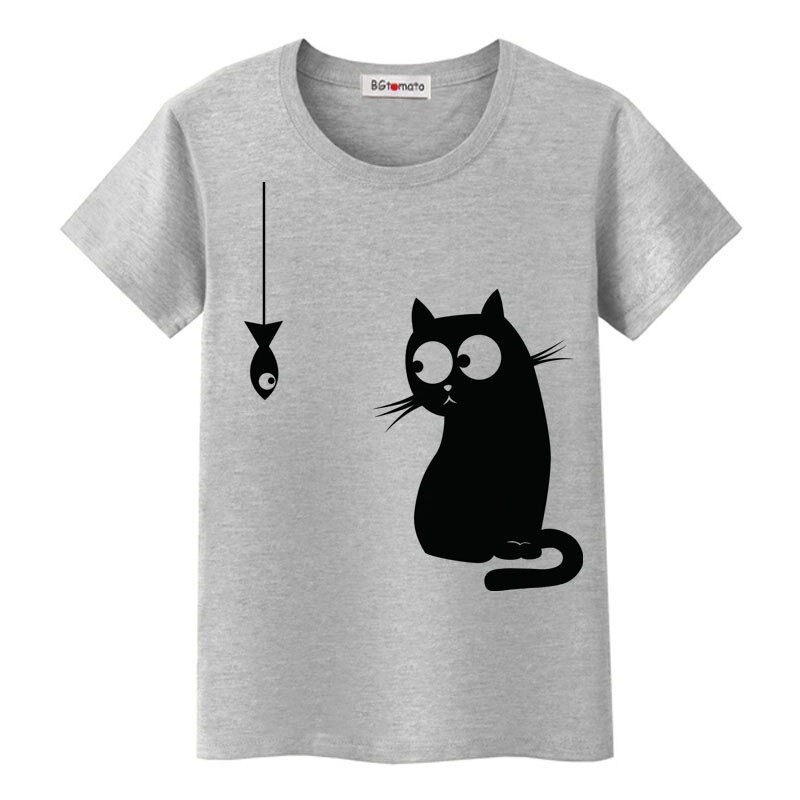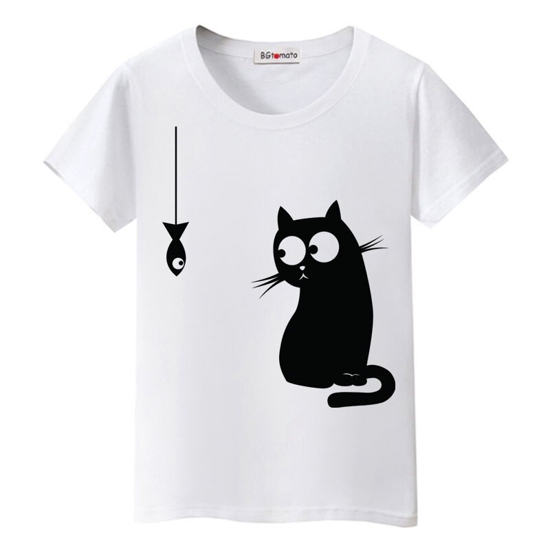 T-shirt dam med katttryck B386