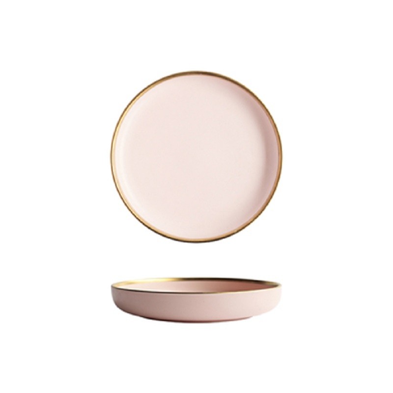 Tallrik i pastellfärger med guldlinje.