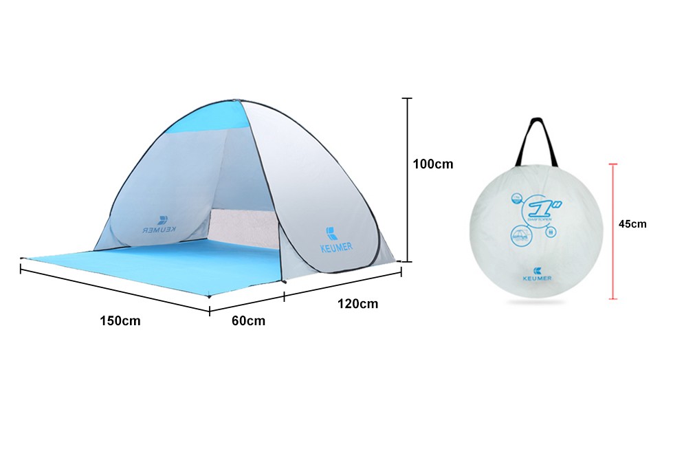 Tältet kan enkelt vikas ihop till en rund form efter användning, vilket motsvarar den elastiska konstruktionens form. Förvaringsfodralet har en diameter på 45 cm och är utrustat med ett handtag för transport. Detta gör det möjligt att bära tältet med en hand, hänga det på en ryggsäck eller förvara det i bagaget utan att det tar mycket plats. Den låga vikten på tältet möjliggör transport även vid längre promenader. När tältet är förvarat i fodralet förblir det kompakt och stabilt, så det öppnas inte av sig själv.