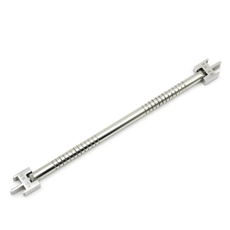 Detta professionella ortodontiska mätsverktyg i rostfritt stål är utformat för exakt positionering och mätning av fästen vid ortodontiska ingrepp. Tack vare den justerbara konstruktionen möjliggör det mätning i fyra storlekar – 4,0 mm, 4,5 mm, 5,0 mm och 6,0 mm, vilket säkerställer universell användning för olika typer av patienter och behandlingsmetoder. Rostfritt stål av hög kvalitet ger exceptionell korrosionsbeständighet, lång livslängd och enkel sterilisering efter varje användning. Den ergonomiskt utformade hållaren erbjuder ett bekvämt grepp och säkerställer noggrant arbete även under mer krävande procedurer. Detta verktyg är en nödvändig hjälp för varje ortodontist och tandläkare som kräver precision, effektivitet och tillförlitlighet.