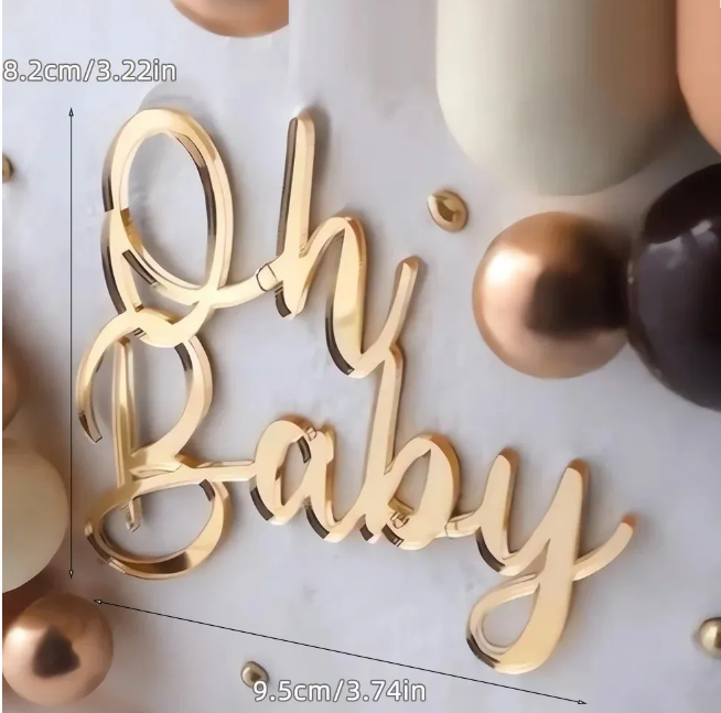 Dekorativ skylt som mäter 9,5 x 8,2 cm för tårtor och temainriktade babyshowers. Utformad för att placeras fritt utan att fastna. Fullständig beskrivning