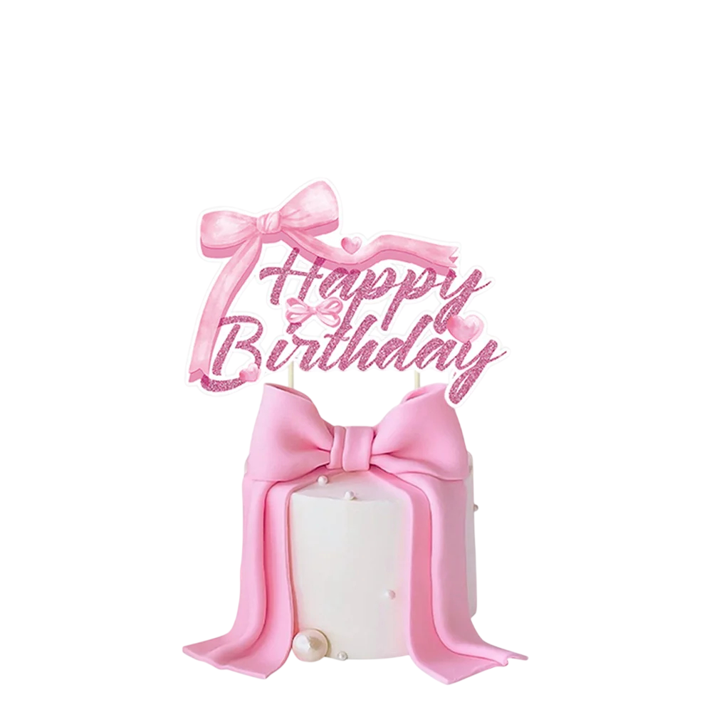 Rosa tårtdekoration med texten Happy Birthday är en stilfull dekoration som förvandlar födelsedagstårtan till ett vackert festligt blickfång. Den eleganta designen kompletterad med söta rosetter ger tårtan en fin och dekorativ look. Denna toppare är perfekt för födelsedagsfester, tjejfester, baby shower eller familjehögtider.