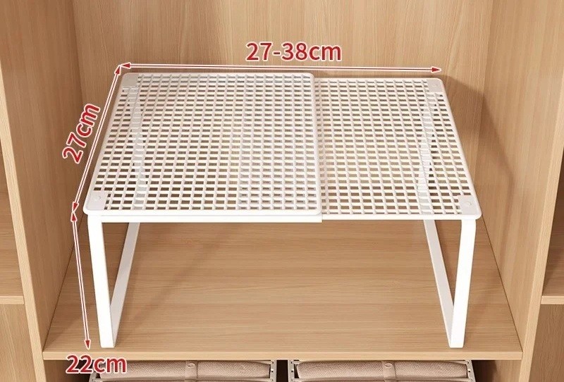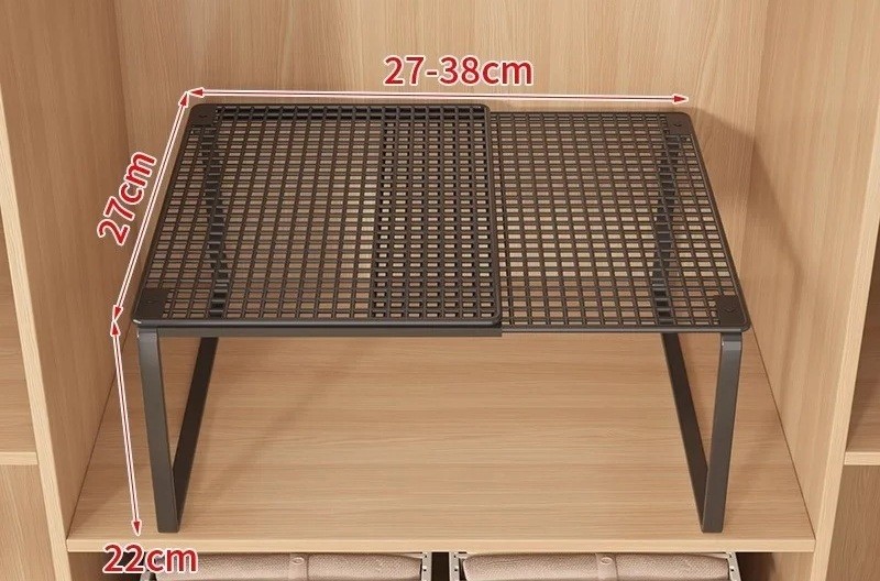 Startsida Startsida Hus och hushållsartiklar Förvaringsutrymmen Hyllor och ställningar Teleskopisk metallhylla för garderob 27–38 cm Djup 27 cm Höjd 22 cm Justerbar organiserare för kläder och skor