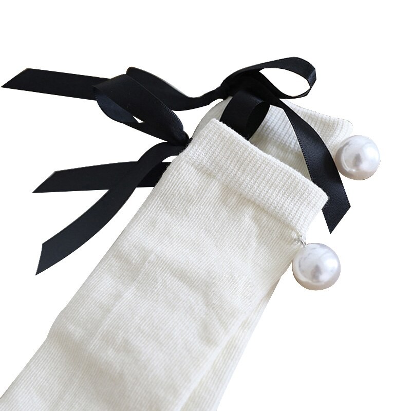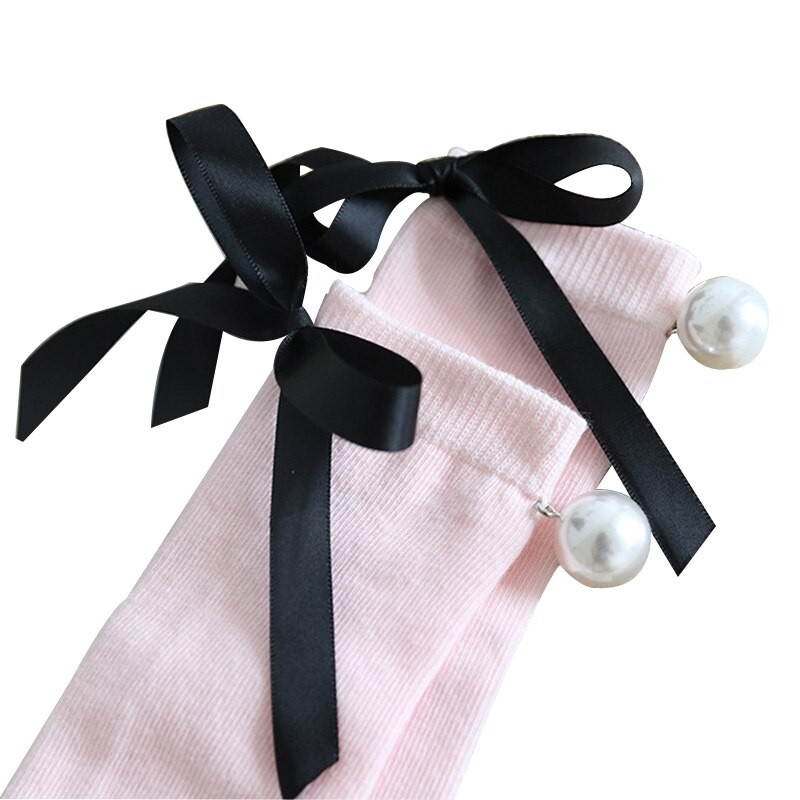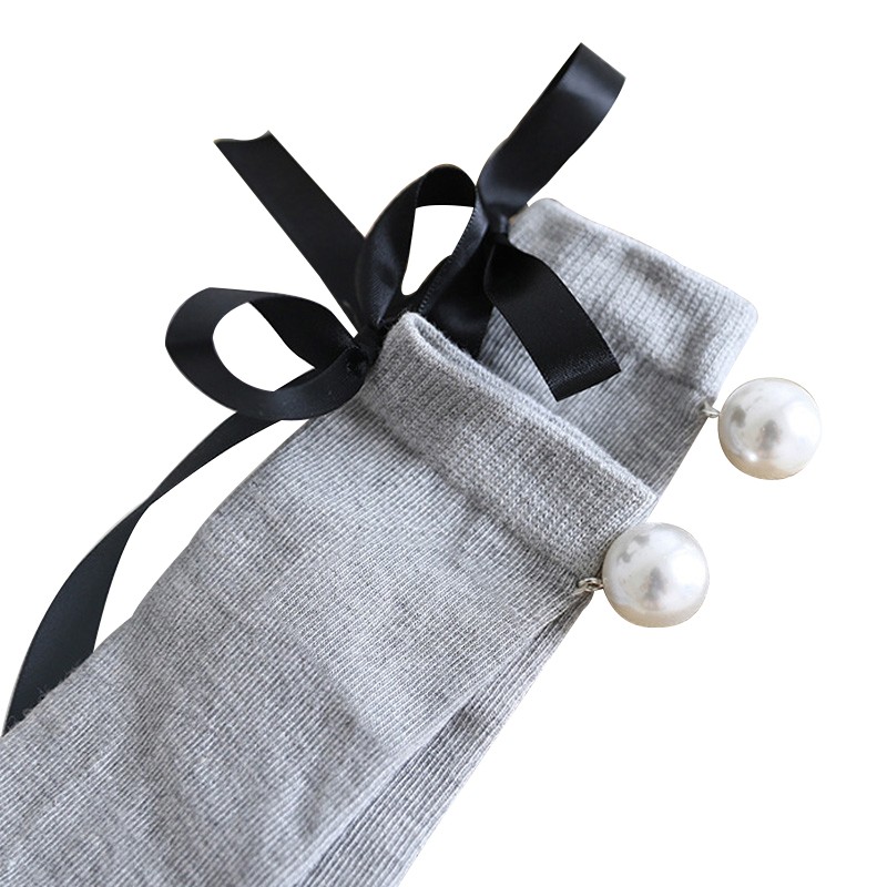 Tjejstrumpor med rosett och pärlor