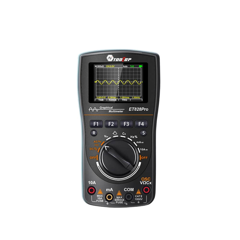 TOOLTOP ET828Pro handhållen oscilloskop 10MHz 50MSa/s 6000 räknare True RMS multimeter voltmeter amperemeter biltester