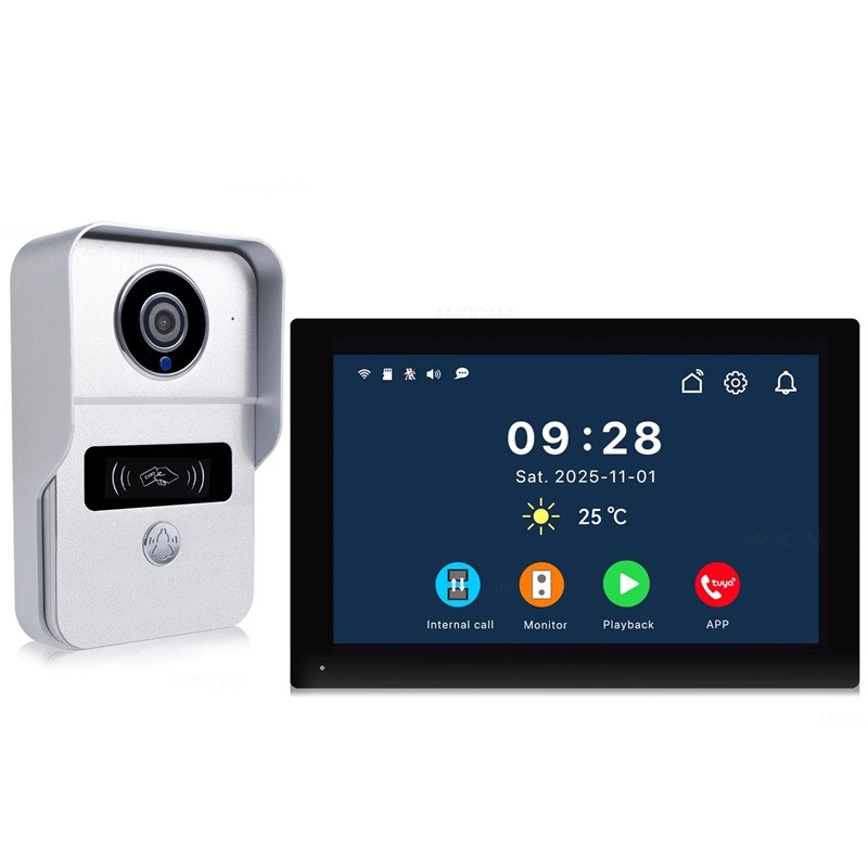 - Funktioner: WiFi-anslutning, kontroll via Tuya APP, låsa upp dörrar, intern samtal mellan monitorer, ta bilder och videor vid rörelse eller ringning