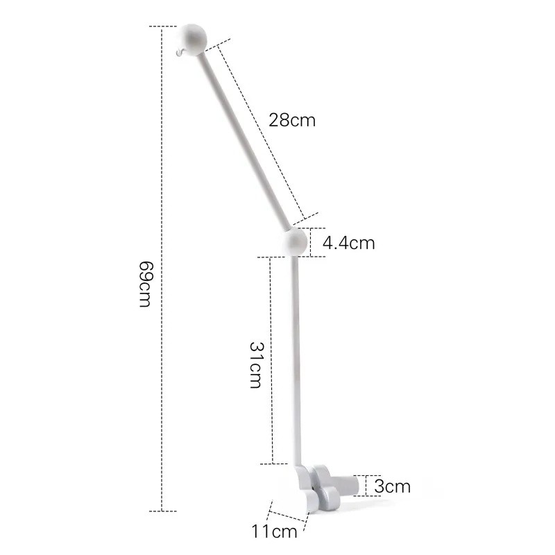 Trähållare för hängande leksaker med en höjd av 69 cm, avsedd för fäste bakom spjälsängen, idealisk för säker upphängning av dekorationer och leksaker. Fullständig beskrivning