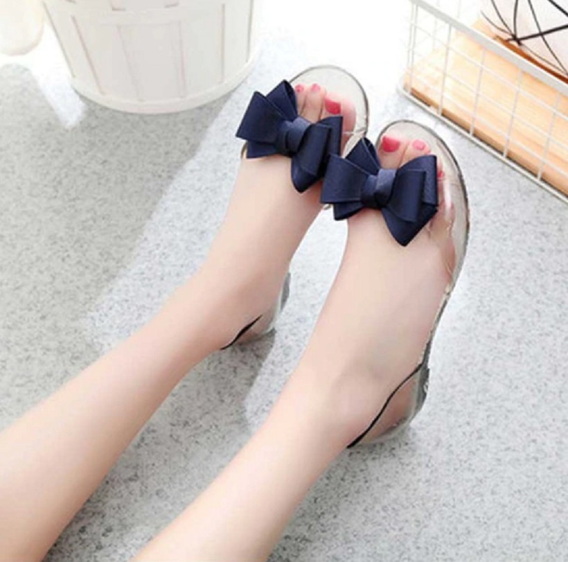Bär dessa genomskinliga ballerinor med rosett för sommarkomfort.