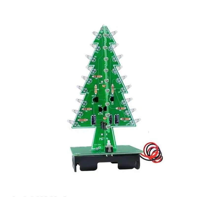 Tredimensionell elektronisk julgran representerar en attraktiv ljusmodul som efter montering skapar en effektfull blinkande dekoration. Systemet är baserat på anslutning med färgglada LED-dioder som växlar ljusstyrka och frekvens, vilket påminner om en levande ljuseffekt. Kretskorten är placerade i form av en gran och möjliggör en stabil konstruktion i tre lager. Denna ljusgran är lämplig som kreativt tillbehör i hemmet eller som teknisk dekoration på skrivbordet.