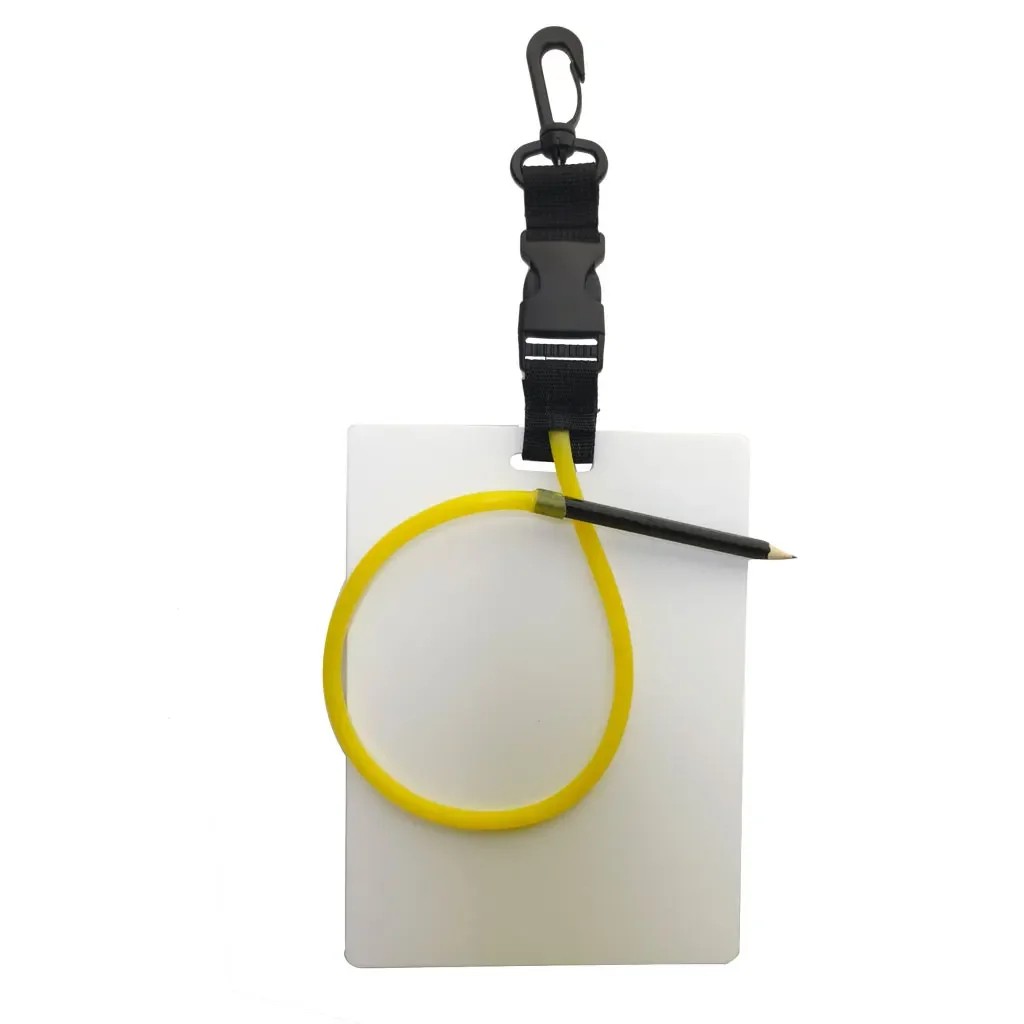 Vattentålig skrivbräda med penna möjliggör enkel kommunikation och anteckning under vattnet. Praktiskt hjälpmedel för rekreations- och teknisk dykning. Fullständig beskrivning
