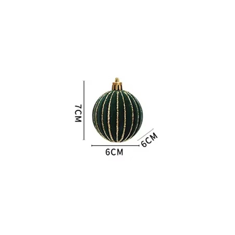 Detta originalset av julgranskulor är det perfekta valet för alla som vill skapa en framträdande och samtidigt balanserad juldekoration. Setet innehåller 12 st Julgranskulor, där varje kula har ett unikt dekorativt mönster. Varje kula har en diameter på 6 cm och måtten 6 x 6 x 7 cm. Tolv olika mönster säkerställer en färgglad look, medan totalt 12 stycken möjliggör en jämn fördelning på granen. Dekorationerna är lämpliga inte bara för julgranen, utan också för dekoration av kransar, skålar, girlander eller festliga bord. Den klassiska runda formen gör det lätt att kombinera med andra juldekorationer.