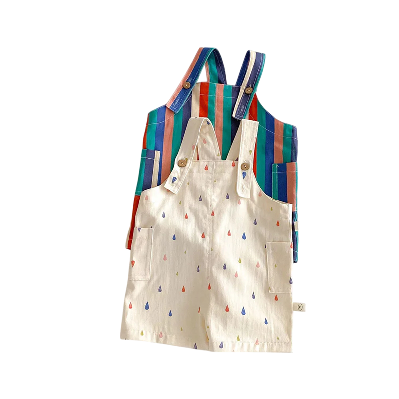 Unisex barnoverall med fickor prickig Beige vårspelsoverall med knappar Moderiktig bekväm overall av bomull och polyester för pojkar och flickor