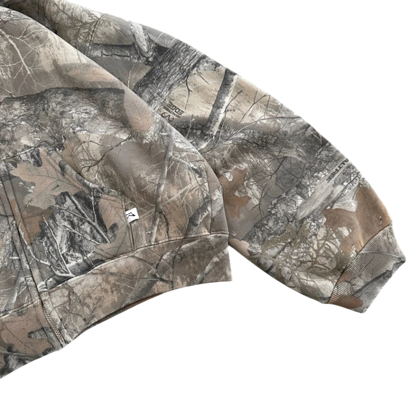 Modern unisex zip hoodie med fickor i grått camouflagemönster. Bekväm, lätt och stilig modell som är lämplig för vardagsbruk. Fullständig beskrivning